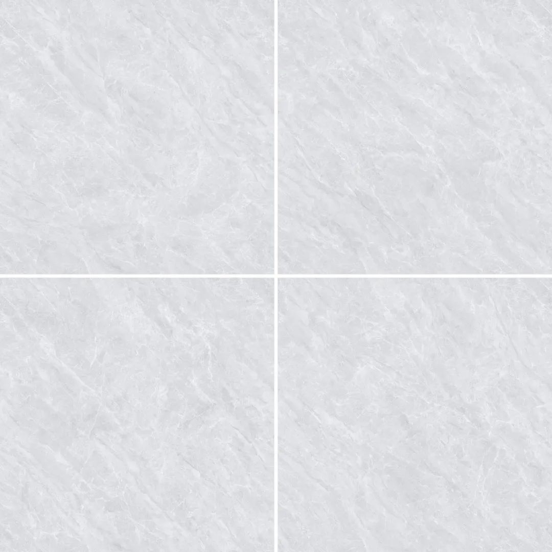 800×800mm的方磚采用超白坯底,米灰色的表面帶有細膩的大理石紋理,光線照射下呈現出優雅的光澤,讓整個空間既溫馨又不失時尚感。超白坯底讓色彩呈現更為純正,亮光工藝則增強了空間的通透感和光線的反射效果。