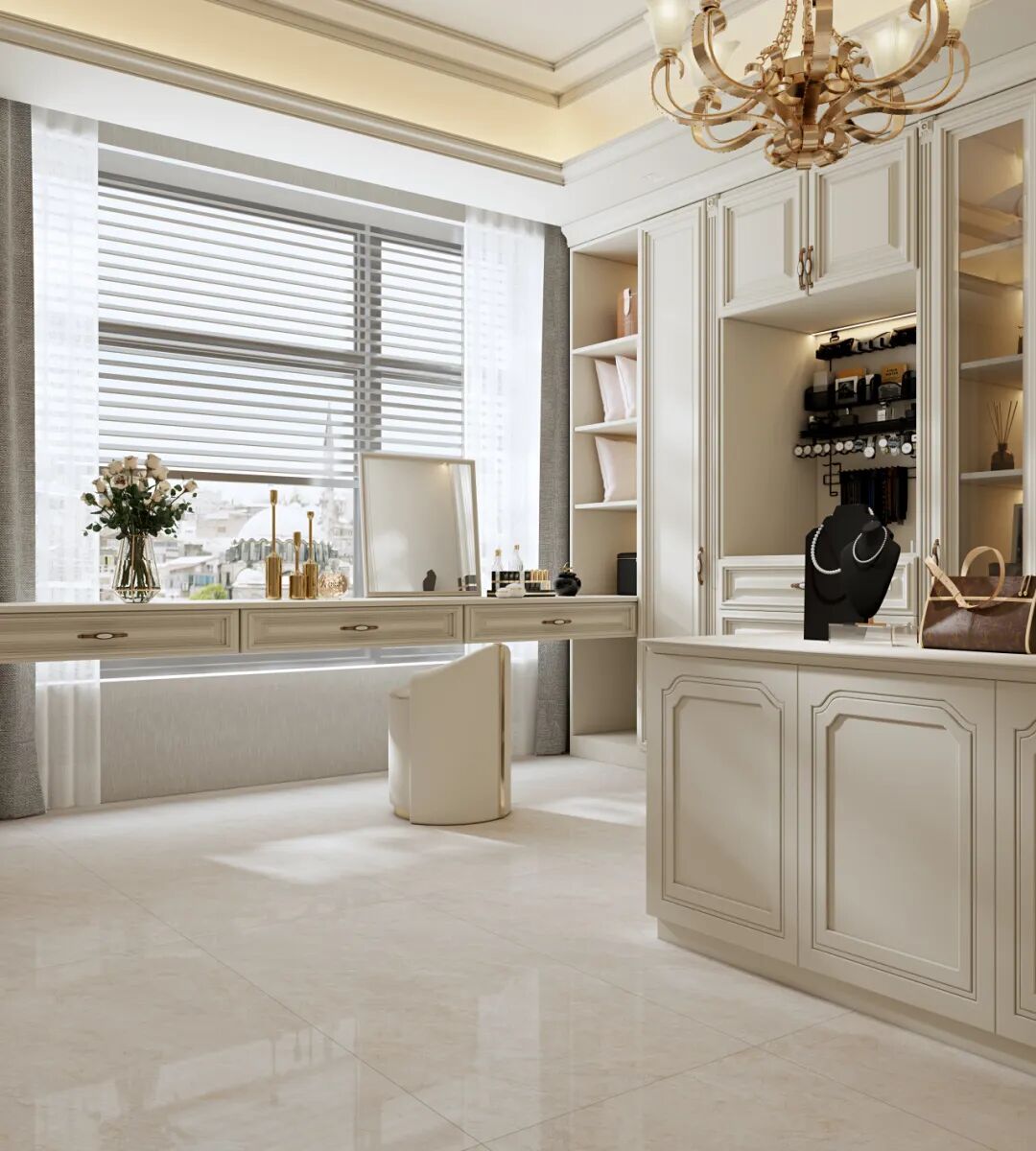 特意把客臥改成寬敞透亮的法式衣帽間,編織你的公主美夢。璃月鋪就的浪漫輕奢氛圍,讓你的每次梳妝打扮,都浸透在柔和暖光與精致質感里。
