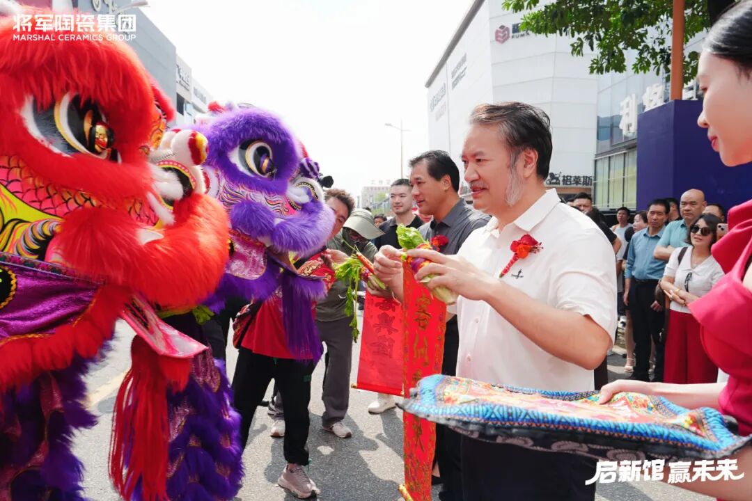 伴隨著激昂鼓點(diǎn),醒獅騰躍起舞,氣勢(shì)如虹。在全場(chǎng)矚目下,嘉賓們執(zhí)金筆為雄獅點(diǎn)睛,寓意點(diǎn)石成金、神采煥發(fā)。隨后“采青”環(huán)節(jié),獅子昂首銜青,“生菜”諧音“生財(cái)”,象征財(cái)源廣進(jìn)、事業(yè)興旺。這一傳統(tǒng)儀式,既是對(duì)中華文化的深情致敬,也寄托著將軍陶瓷集團(tuán)對(duì)未來的美好祈愿。