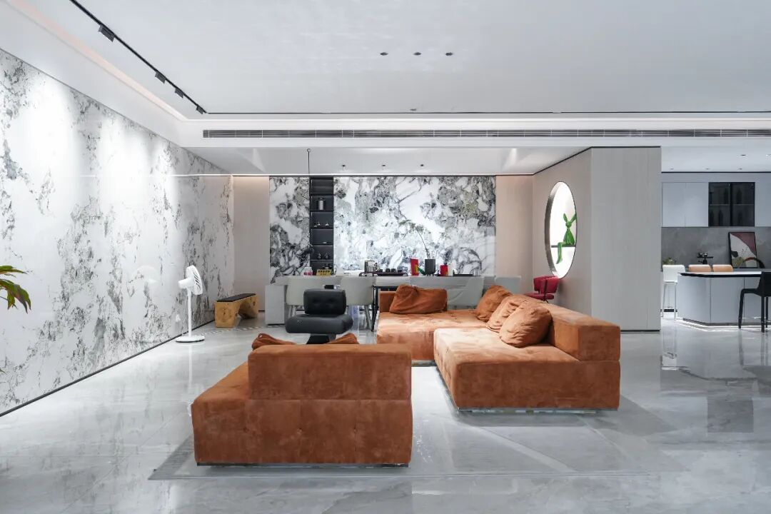 展廳通過更新瓷磚選品與生活飾物,延續簡約而富有層次的空間調性,打造更具藝術氣息與生活溫度的時尚樣板間。